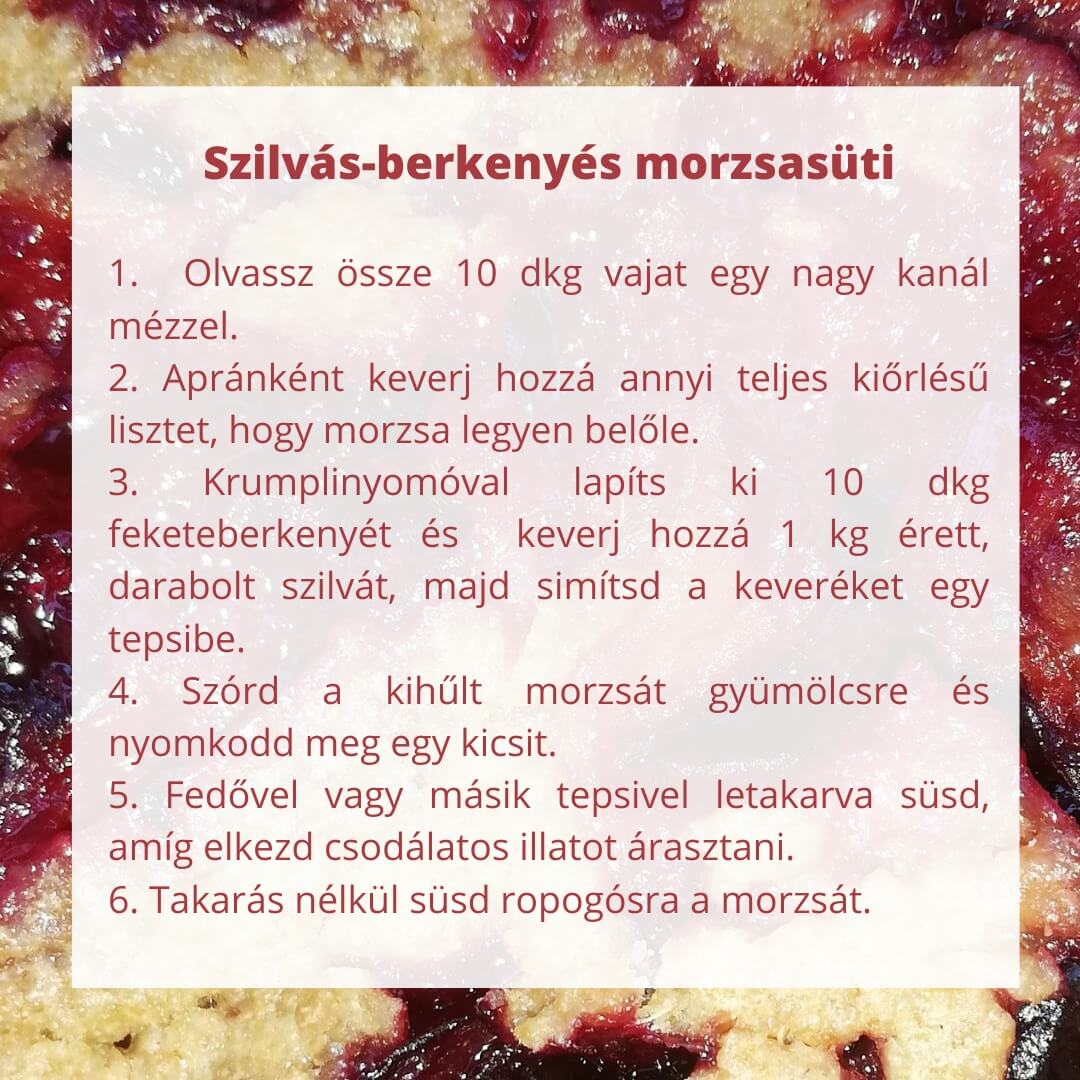 ⇒ Készíts az ősz gyümölcseivel mindenféle morzsasütit. Mutatunk egy olyan receptet, melyben őszi szilva édességét ellenpontozza egy kis fanyarság a feketeberkenyéből.